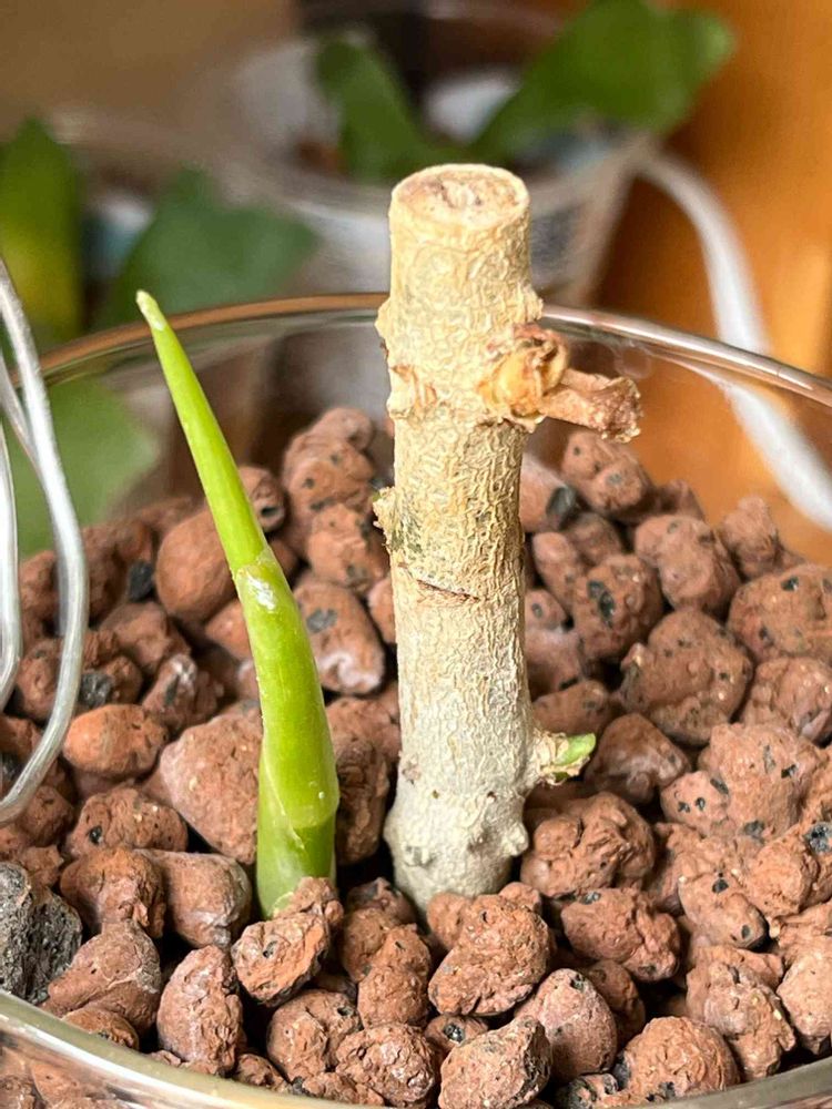 昨年の11月頃、先端から脇芽が出たのですがあまり成長せずそのまま年越し、成長期に入って根本から別株がでてきました😳