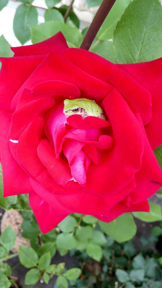 お花に入ってるアマガエルさん