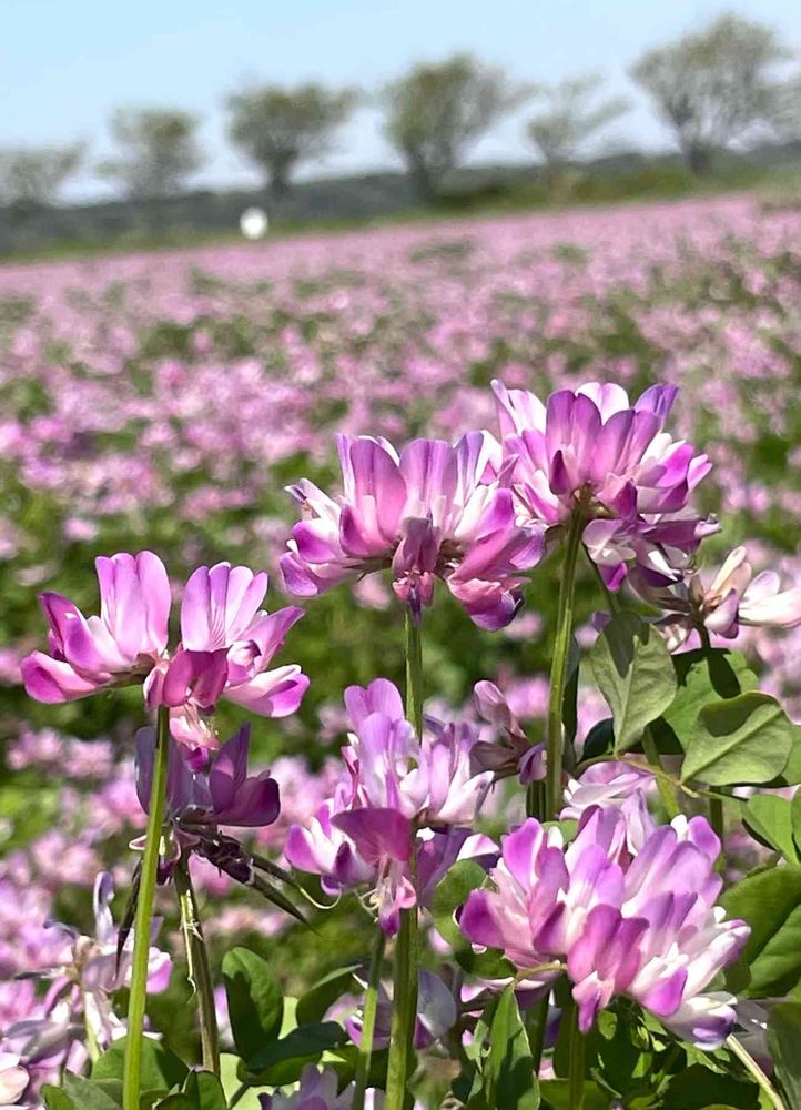 青空に映える鮮やかなレンゲソウさんがすキラキラしてすてきですね𓂃𓈒𓏸︎︎︎︎🌸*✲゚*𓂃𓈒𓏸︎︎︎︎🌸*✲゚*𓂃𓈒𓏸︎︎︎︎🌸 *✲゚*