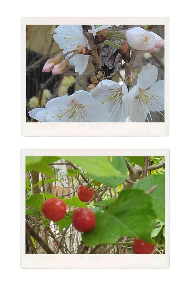 3/13に投稿したシナミザクラの実が赤くなりました。