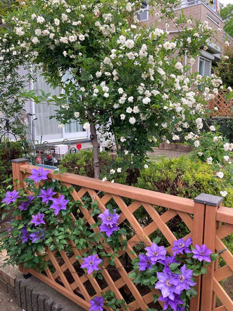 旧枝咲のクレマチスなので、冬に誘引頑張って良かったです😊