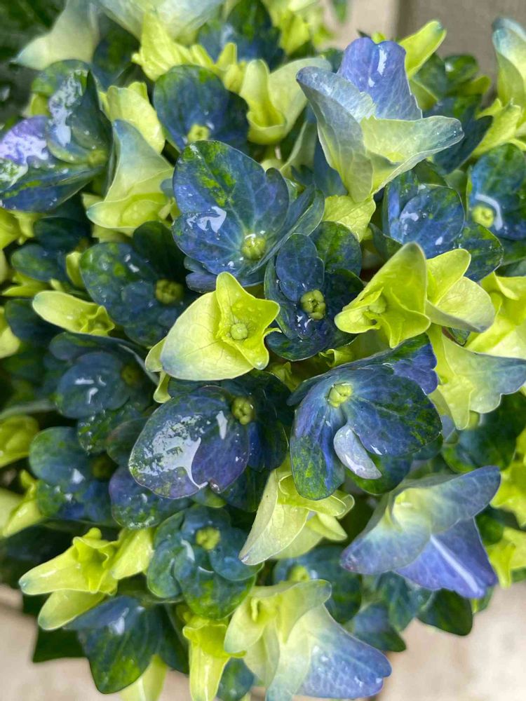 ネイビーブルーっていうアジサイ、すっごいネイビーブルー色で、両性花が白くてそのコントラストがキレイで今めちゃくちゃ気になってるんよ( 💙´꒳`*)