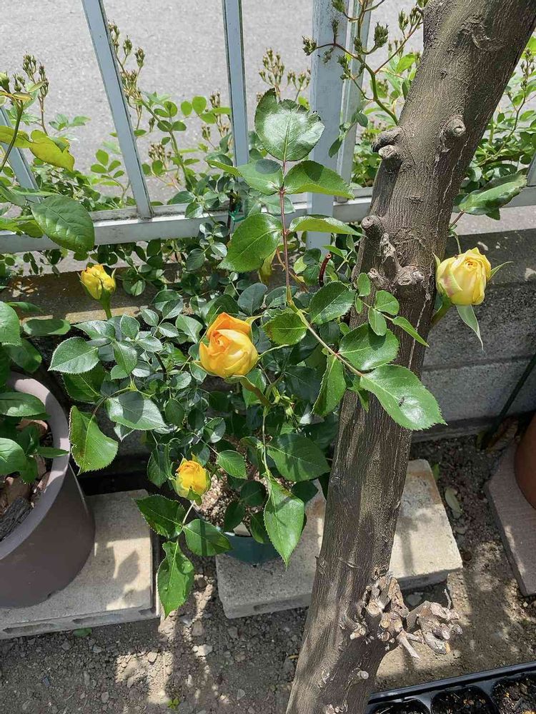 去年挿し木でもらったキャラメル・アンティークがだいぶ大きなつぼみをつけて今から咲くのが楽しみです。