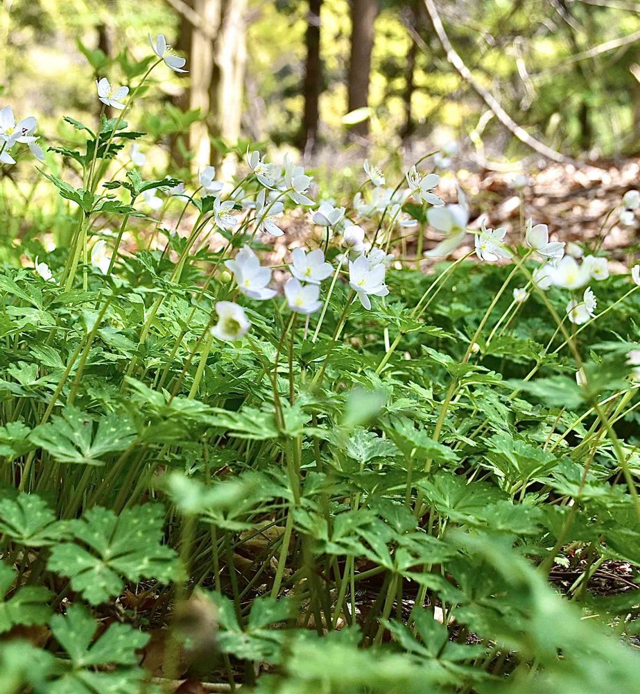 楽しませてくれた「ニリンソウ」も毛終盤、春の日差しとともに花茎が長く伸びて花が立ち上がっています😍