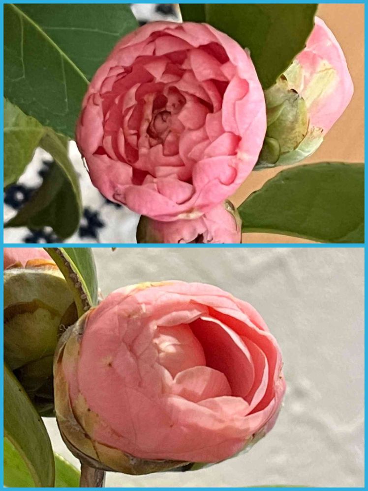 職場の同僚が持って来てくれた椿、やっぱり可愛らしい😍