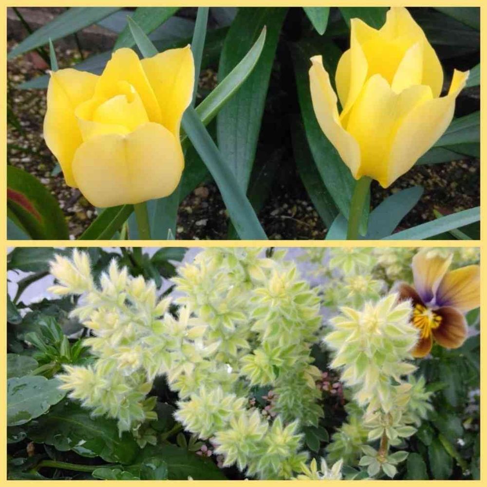 原種チューリップのピンク&イエローのはずが、その中にイエロー💛のチューリップが咲き始めましたよ~🌷🌷