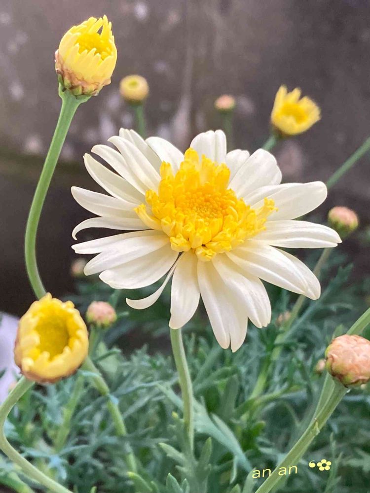 とても華やかなマーガレットさん達ですね🤍💛🤍とても元気をもらえます💚今日は寒い朝です。暖かくしてお過ごし下さいネ💐