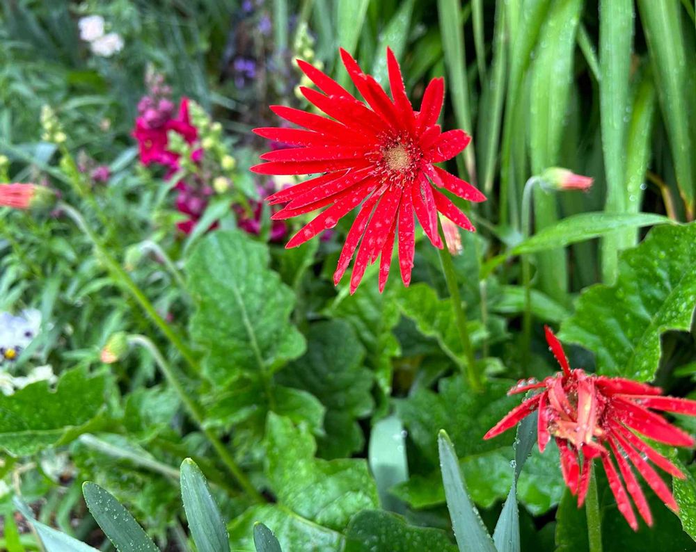 当時は赤いガーベラなんてって思いましたが、これは何度掘り起こしても、ちゃんと芽が出るし、お庭に馴染む赤でとても気に入っています。