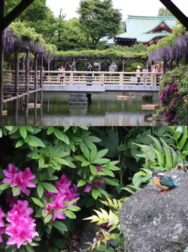 亀戸天神のお参りのあと水辺で翡翠ちゃんが水場で何回もダイブ💦してエサを獲っているのが見れました