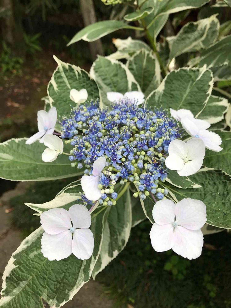 お出かけ先で見つけた斑入りガクアジサイ💕
