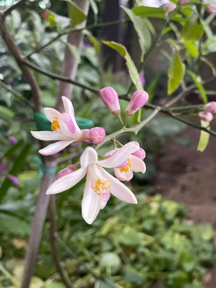 レモン🍋のお花🌸がピンクがかっているのは 意外でした😳 てっきり🤍白だと…
