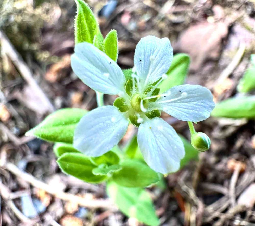 山道をそぞろ歩いていたら、ん❓ちと毛色の違ったハコベを発見。そんなに小さ〜いという感じではなく1cmほどはあるかな。