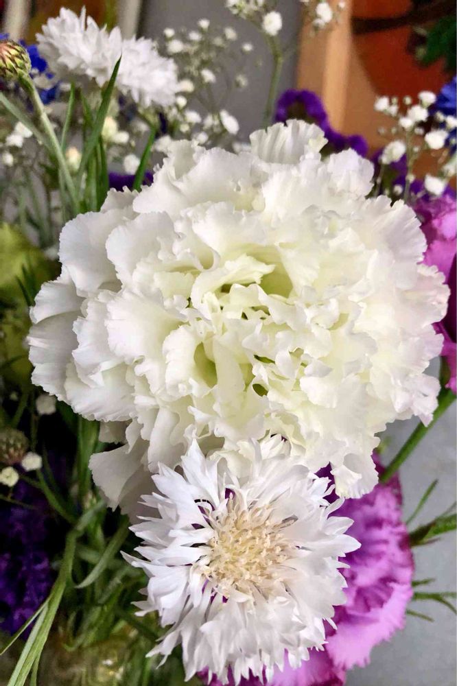 真っ白なトルコ桔梗と矢車菊とかすみそうです。