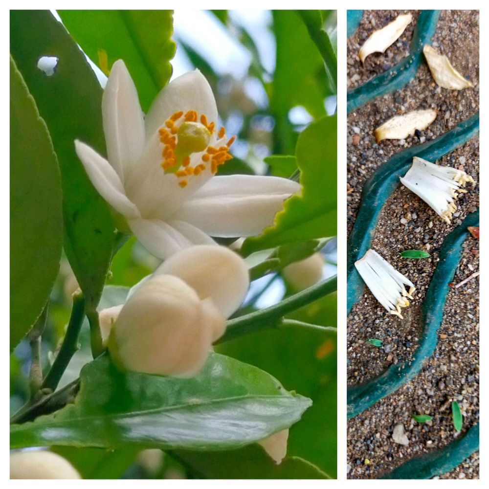 雌しべの柱頭がぷくっと膨らんで将来のナツミカンの形を予想させると思ったら、この柱頭はいずれ落ち、根元の子房が膨らんで実になるそう😳