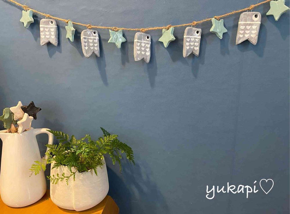 ナチュラル色の鯉のぼり🎏のガーランドいいですね〜😍