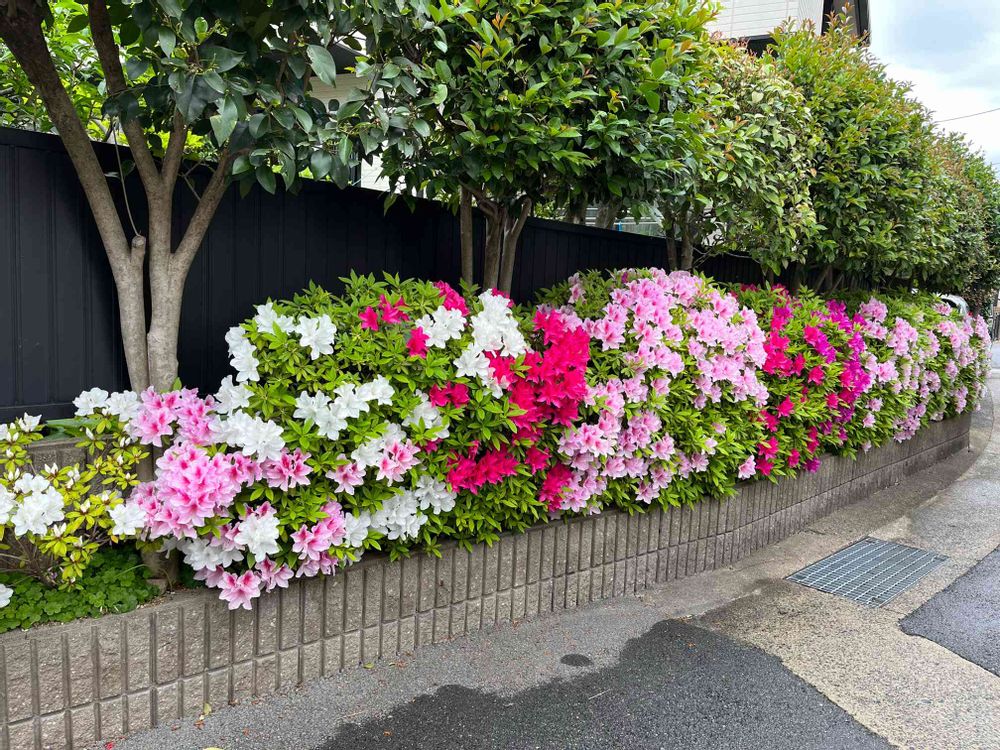 我が家の東側の塀の外のヒラドツツジの植え込み。