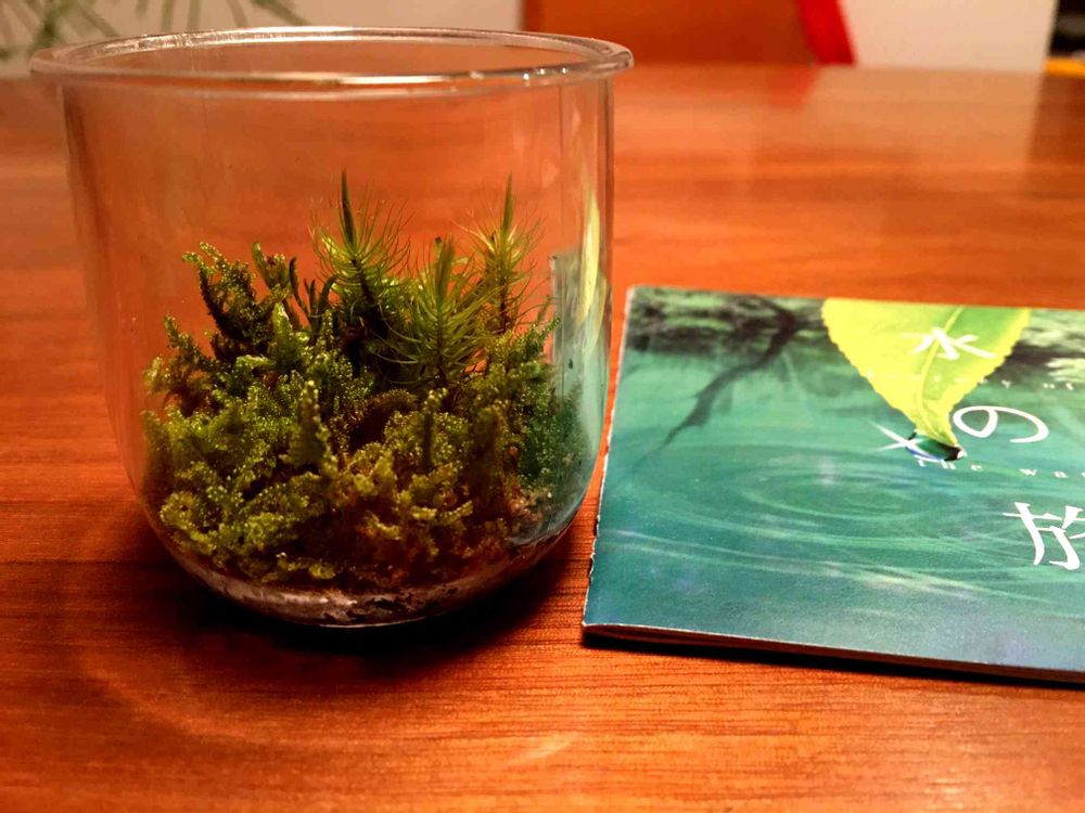 早速、プリンの容器をリサイクルして、苔テラリウムを作ってみた😊