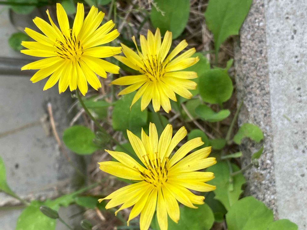 花はタンポポに似ている感じですが、タンポポよりも花びらが少ないです。茎は細く、葉も小さいです。