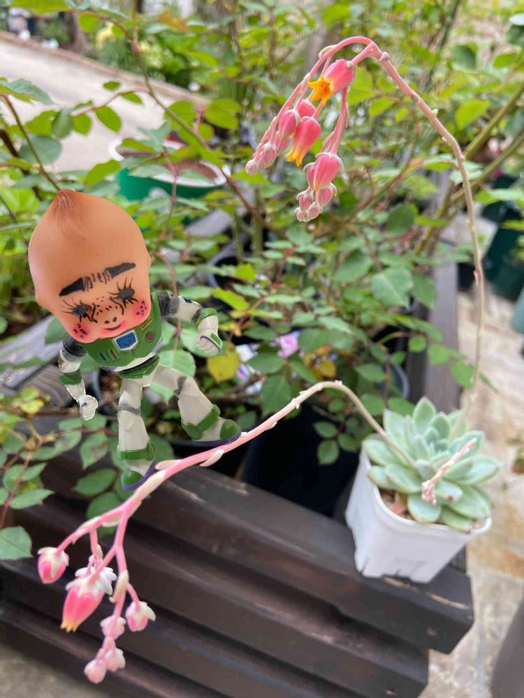バズの体がバックの🍀グリーンに混じって……生首に見えちゃった😱💦💦