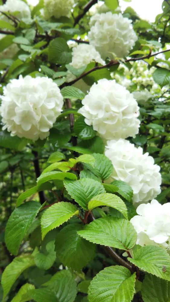植物園のオオデマリが丸く手鞠のように咲いていました。