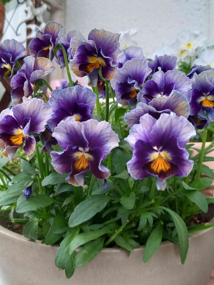 今季2度目の投稿です…花びらのスジスジと水井の縁どりがちょっとミステリアスなビオラです 🤗