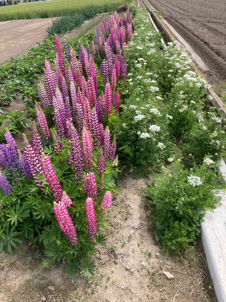 我が家からちょっと離れた所にある畑のルピナスとオルレアです🌸🌼🌸(おととい)