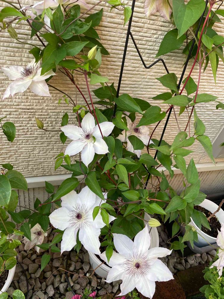 クレマチスって、ズボラな私でも育てられるからかなりいいよ🎶水切れさえしなければOK笑!