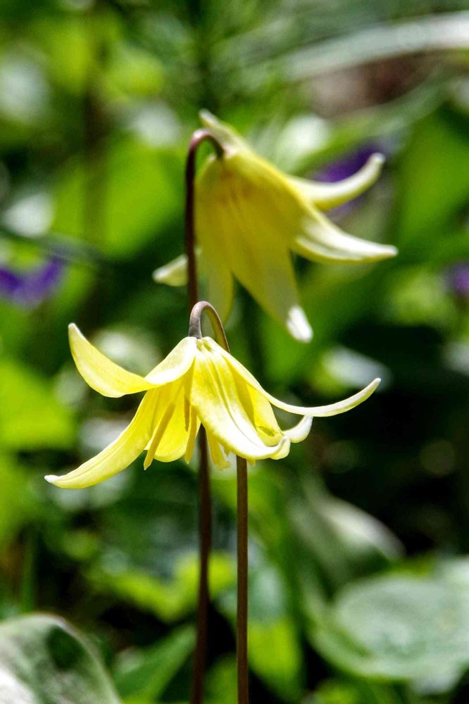 キバナカタクリ(黄花片栗)は、北米原産で日本のカタクリよりも少し大きく、葉に艶があるのが特徴です