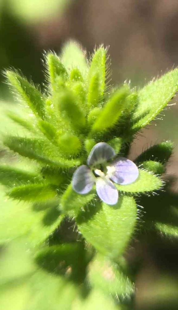 細い葉っぱにオオイヌノフグリ を小さく小さくしたようなお花。