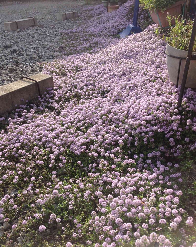我が家は狭小庭なのでせいぜい30cm四方に広がったタイムを楽しんでいます。フォローさせてください。広いお庭のお花を楽しみに見させて頂きたいです😊