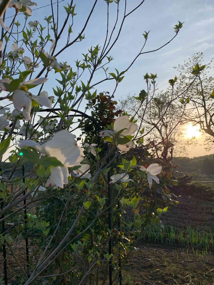 2019年11月そば祭りにて苗木配布で頂いたハナミズキ、今年初めて花が咲きました😊✨何色が咲くのか楽しみにしていました。白でした⚪️✨