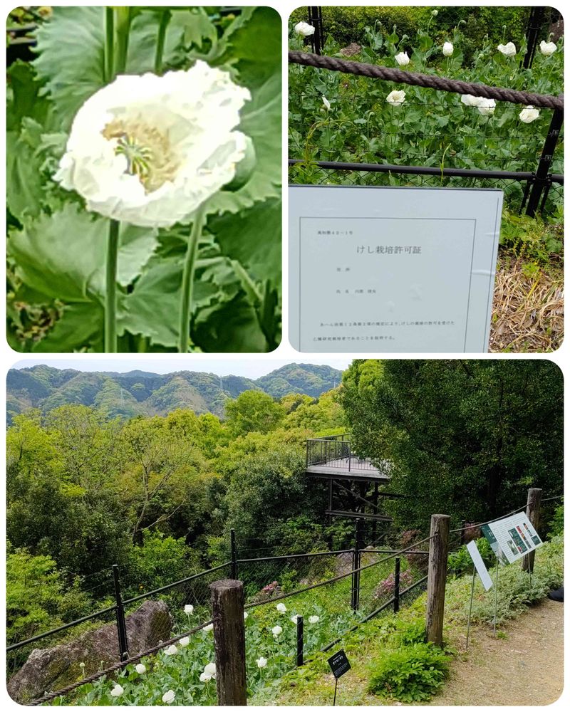 このケシは麻薬の原料となるため日本国内での栽培は禁じられており、手が届かない斜面に栽培許可証と共に展示されていました。