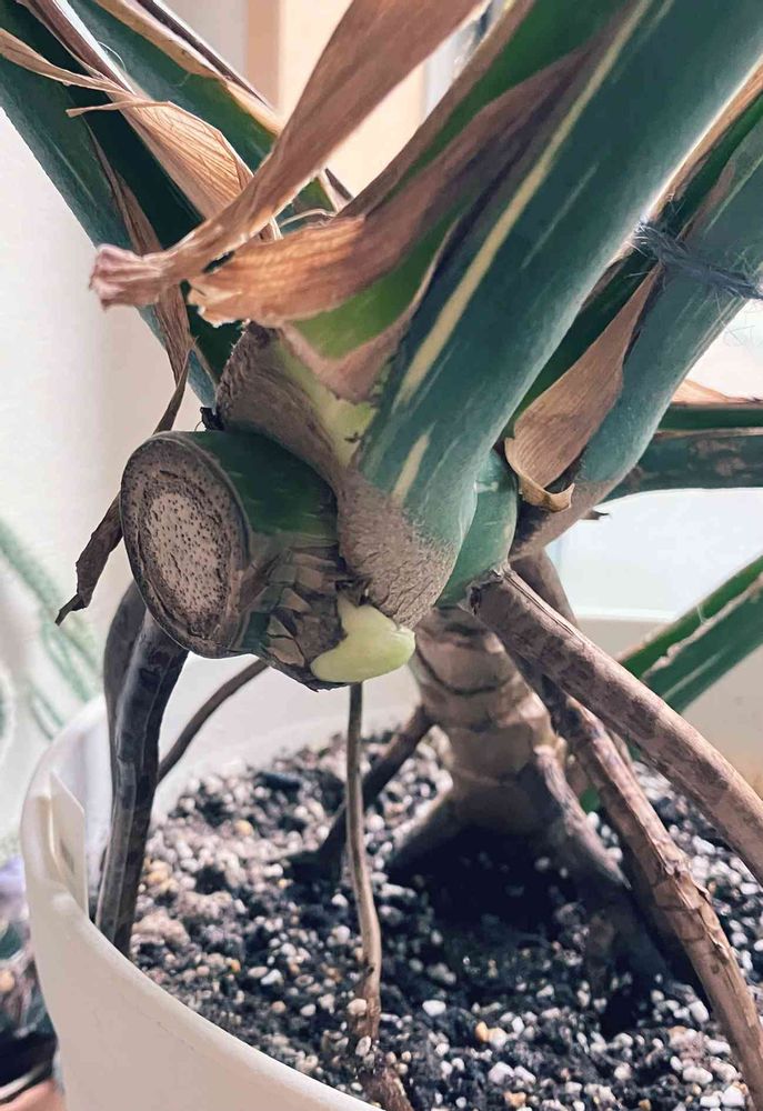 トップと気根をカットして別の苗に仕立てた後の、これは元株。