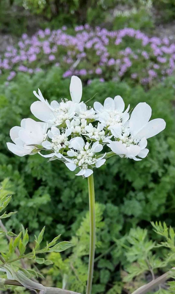 昨年 頂いたオルレア、こぼれ種でワンサカ出て来てオルレアだらけ😅この子は少し離れて出てたので株も大きく花が咲いてるけど後ろの子達は密集してるから間引きしないと大きくならない😅でも葉だけでも緑が綺麗だからこのままにしてます、人参の葉みたい🤭