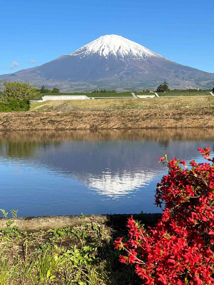 逆さ富士とツツジがコラボして撮れました‼️