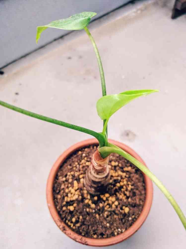 葉っぱがどんどん元気なくなって植え替え失敗したか〜😱 と思ってたシマクワズイモから新芽😆