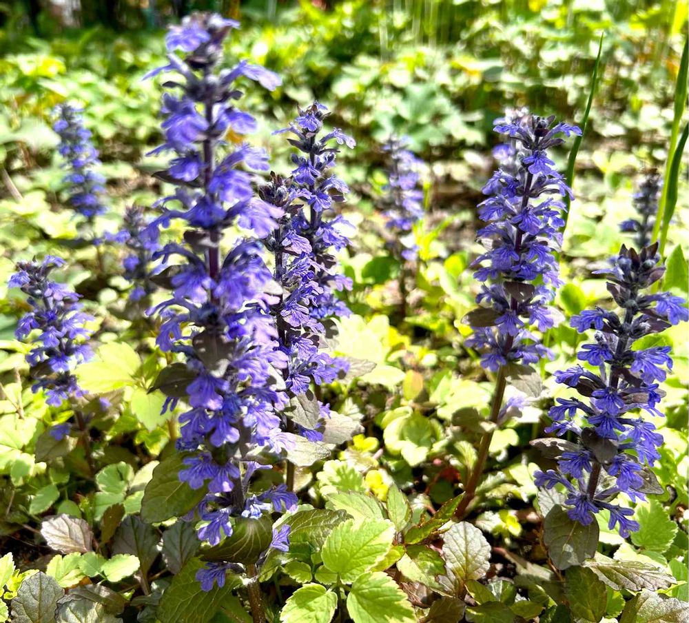セイヨウジュウニヒトエが隣市内花壇で咲いていました✨紫色が新緑の中に一層引き立っていました💕