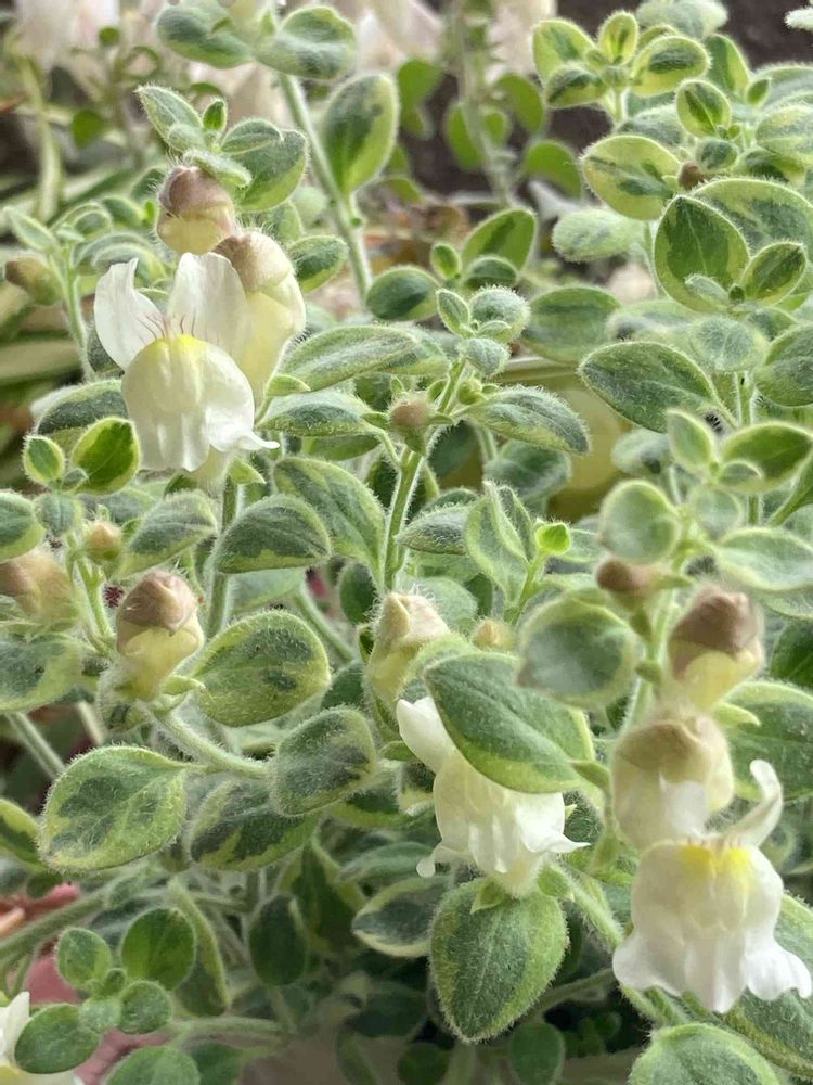 金魚草アールグレイの葉っぱに斑が入ったものらしいです❣️黄色みがかった斑入りの葉っぱは、柔らかい月の光のよう🌕