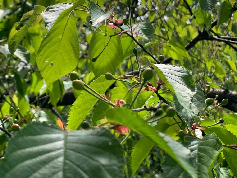 お山のパトロール😀山桜にさくらんぼ🍒みっけ😀食べられないんだっけ❓😅