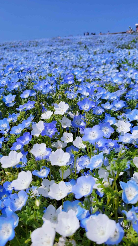 「みはらしの丘」一面に咲き揃い 青い空へと続いていました。