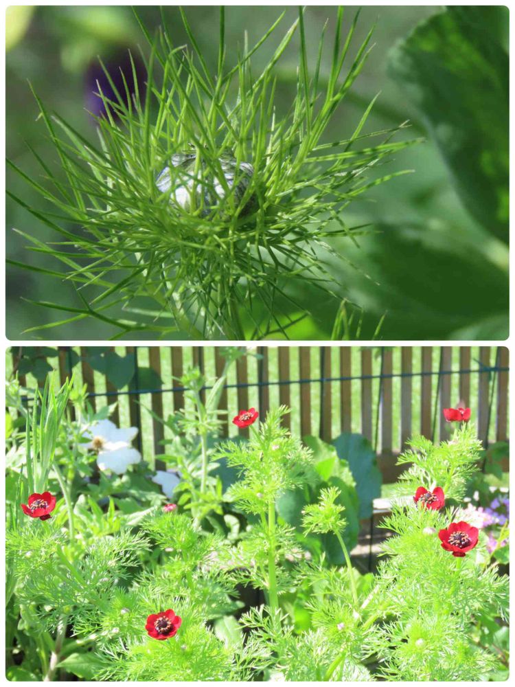 ニゲラと思って育てていたら赤い蕾がついて???騙された〜!ってなりました🙂