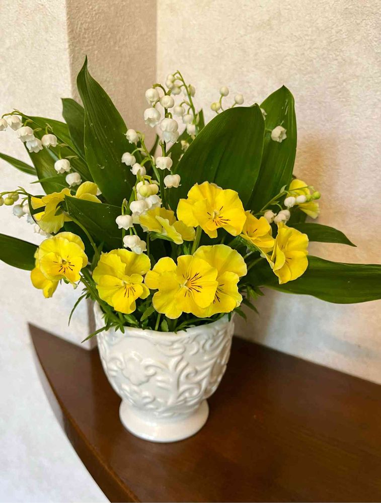すずらんさんは大好きなお花ですし、黄色のビオラさんもとてもキュートな感じで、可愛い2人が合わさって更に可愛さ増し増しです😍