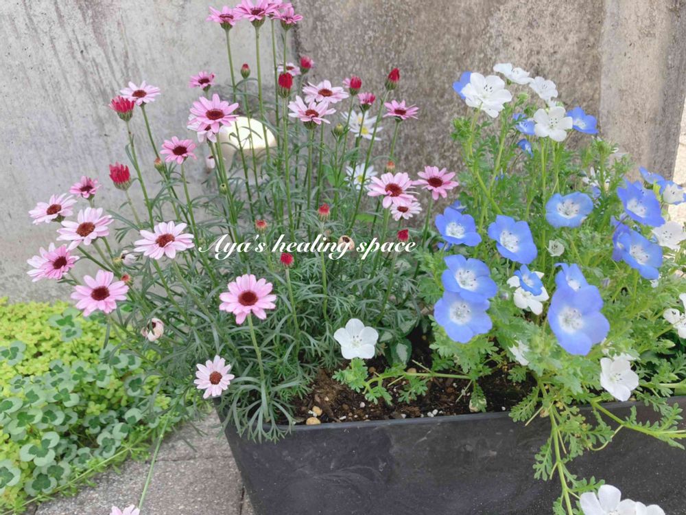 AYAさんのネモフィラ,ローダンセマム・マーキュリー,寄せ植えの投稿画像
