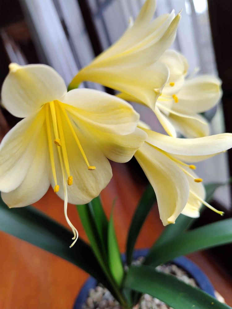 君子蘭はオレンジの花が主流ですので黄色の花は一際目立ちますね👍