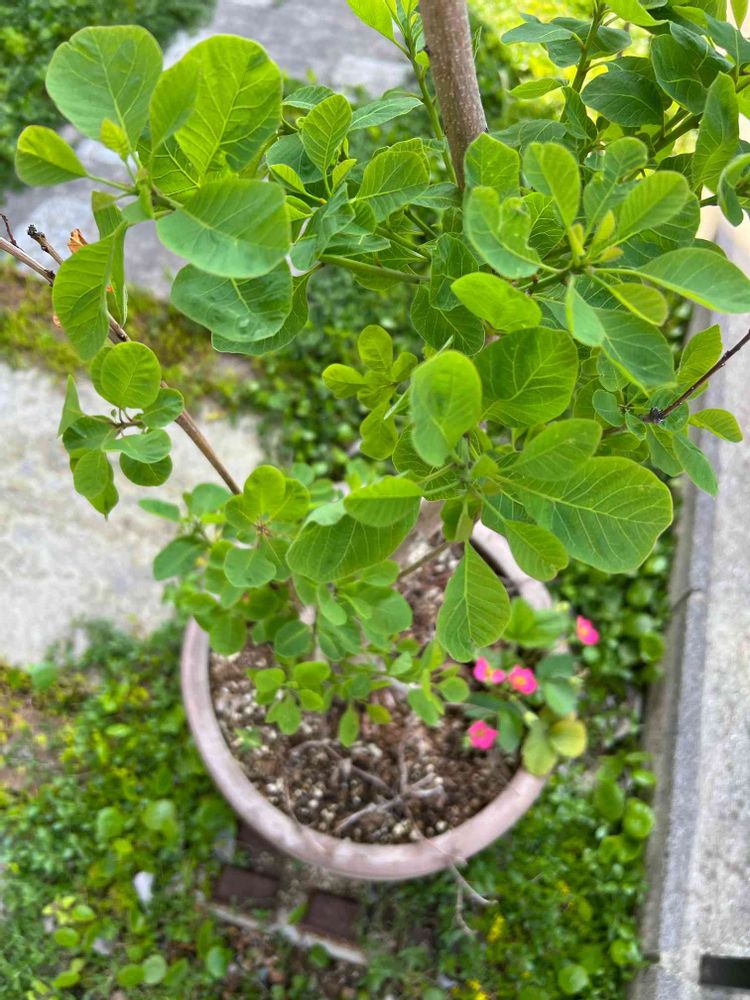 昨年地植えから鉢植えに戻したスモークツリーも無事に芽吹きました🌱