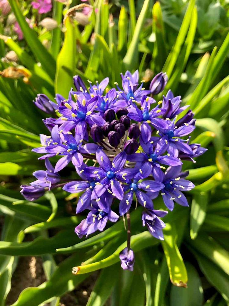 オオツルボ(シーラ・ペルビアナ)が咲いてきました☺️陽を浴びて鮮やかさが増してます。