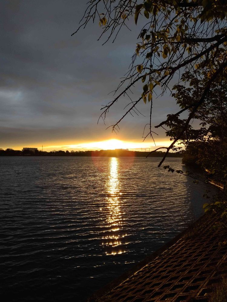 水面に夕日がうつって綺麗〜✨キラキラしてますね〜🌅