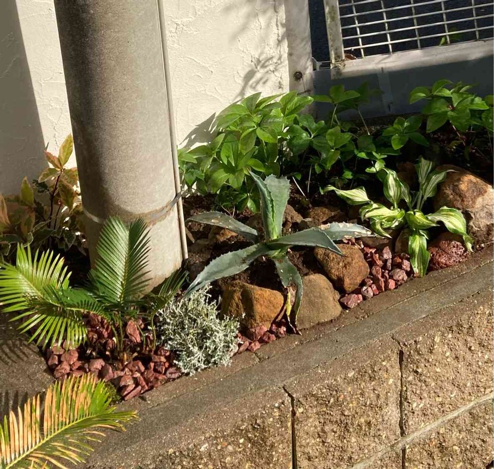 早速小さなスペースにロックガーデン