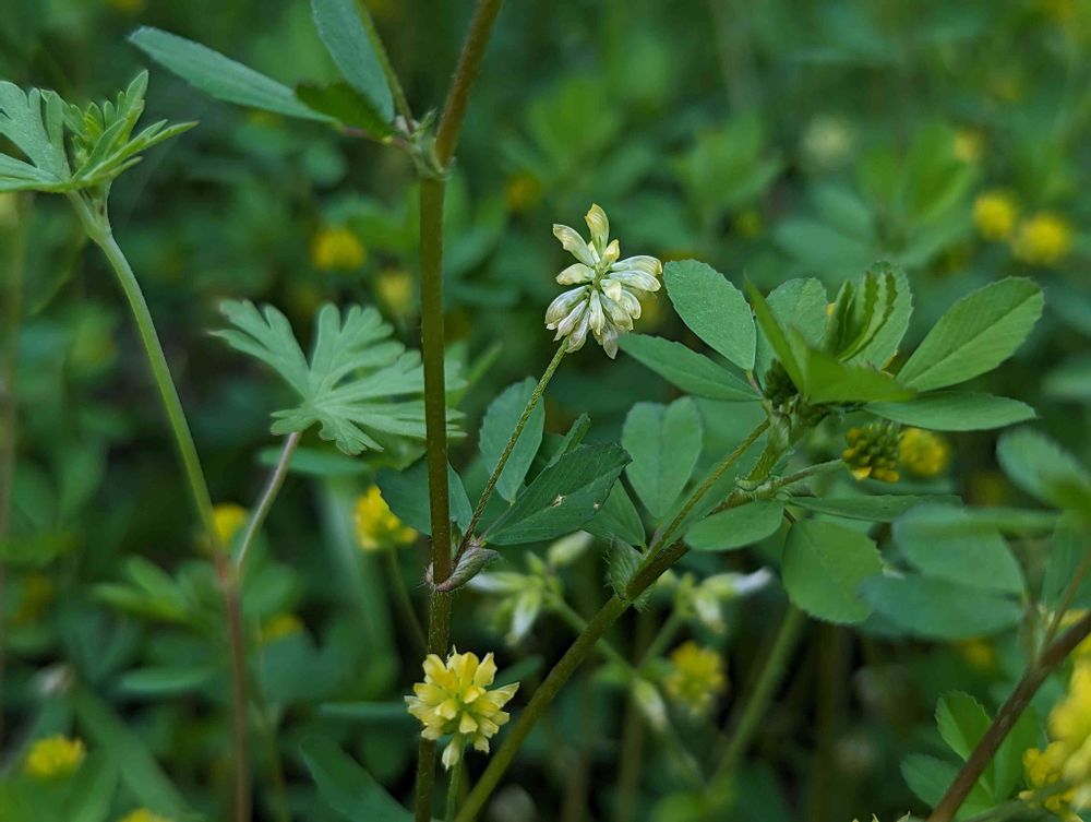足元から、「私はここよ」と聞こえてくるようで、声の主が、コメツブツメクサなのか、よく似ているコメツブウマゴヤシなのかを、しゃがんで確認するのが好きなのです。