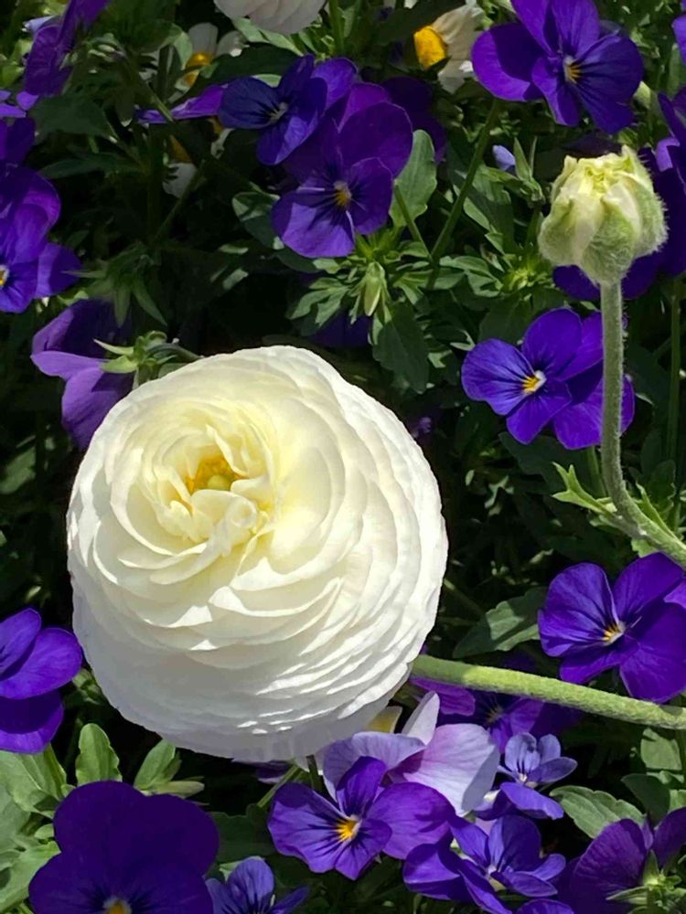 白いラナンキュラスと紫のビオラさんたち🌿🤍💜